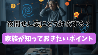 夜間せん妄に悩む家族へ。夜になると不安や混乱が強まる「せん妄」への対応法を、環境調整・声かけ・安全対策・家族の負担軽減まで実践的に解説します。